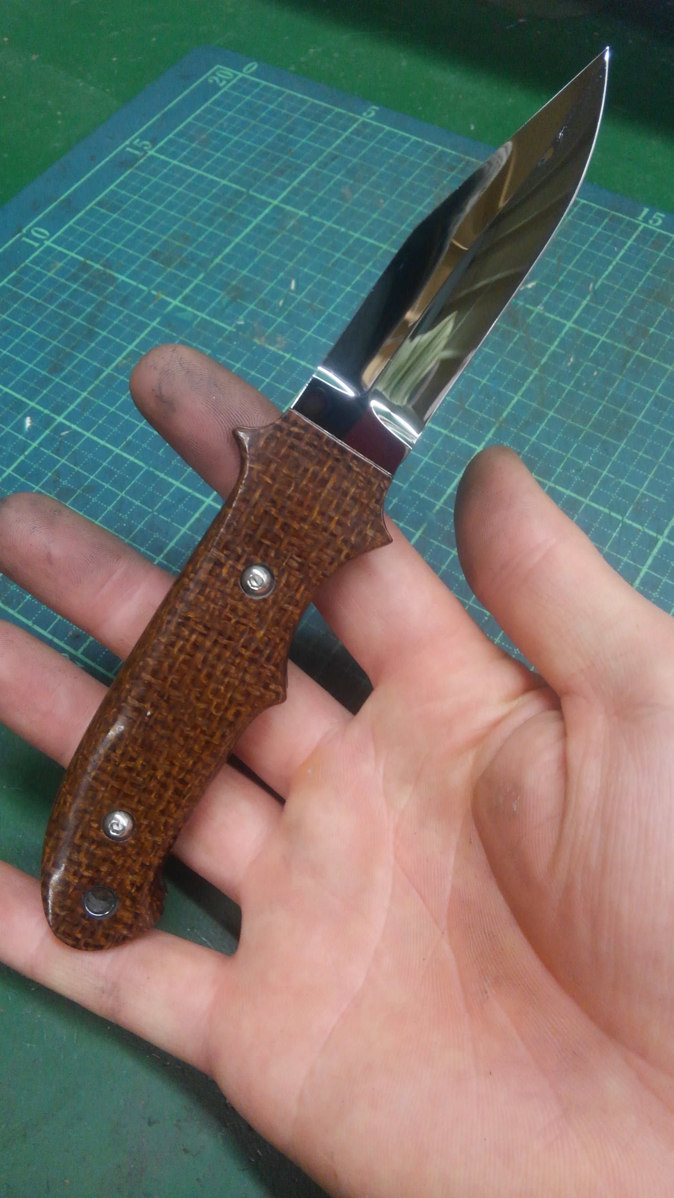 いわゆるフリッパーという物で、ハンドル前方にあるタブを引いてブレードを出すような構造のナイフです。