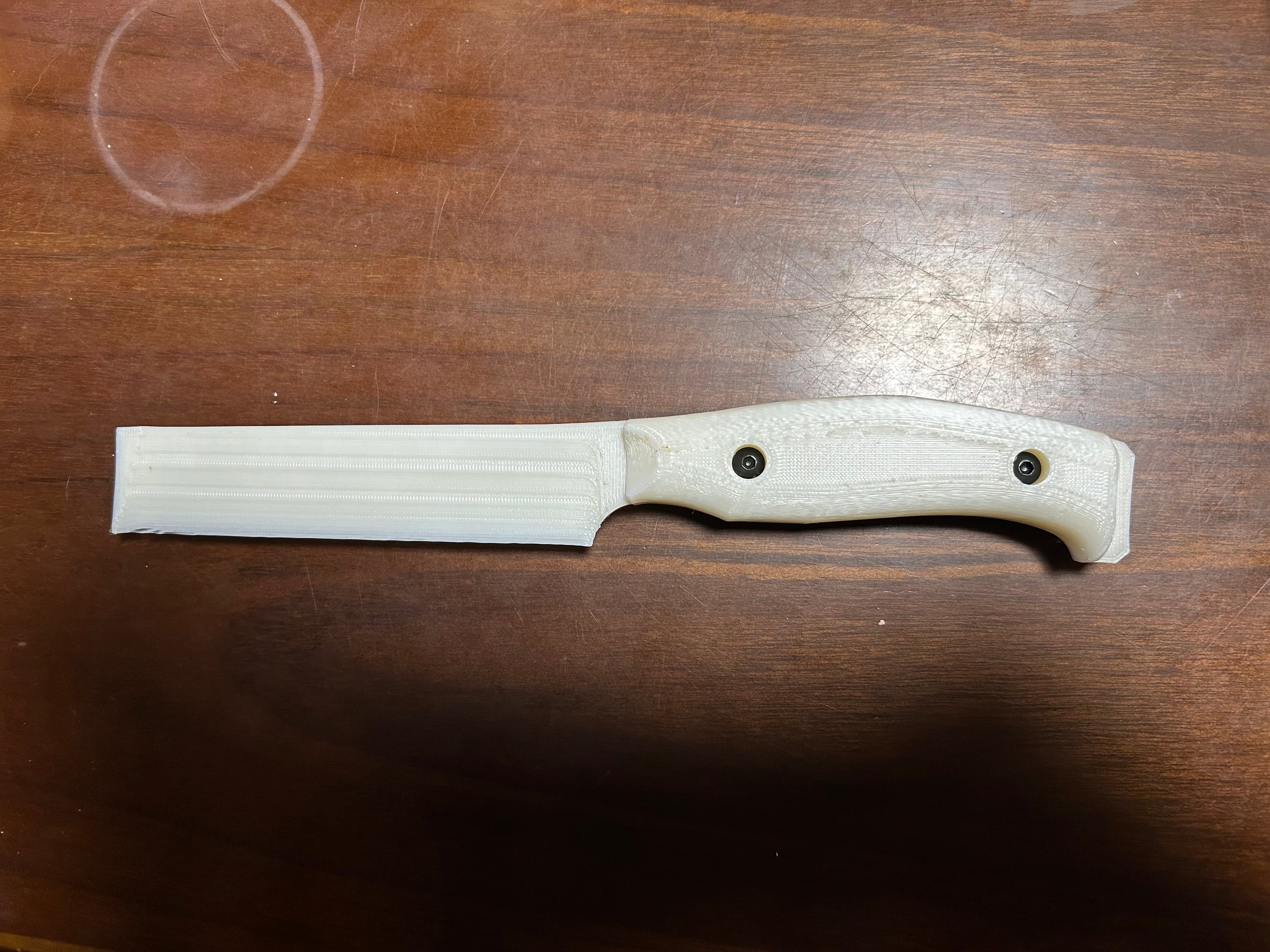 暖という名前のナイフのモックアップです。実物と全く同じ形状、大きさに3Dプリンタでプリントしました。
