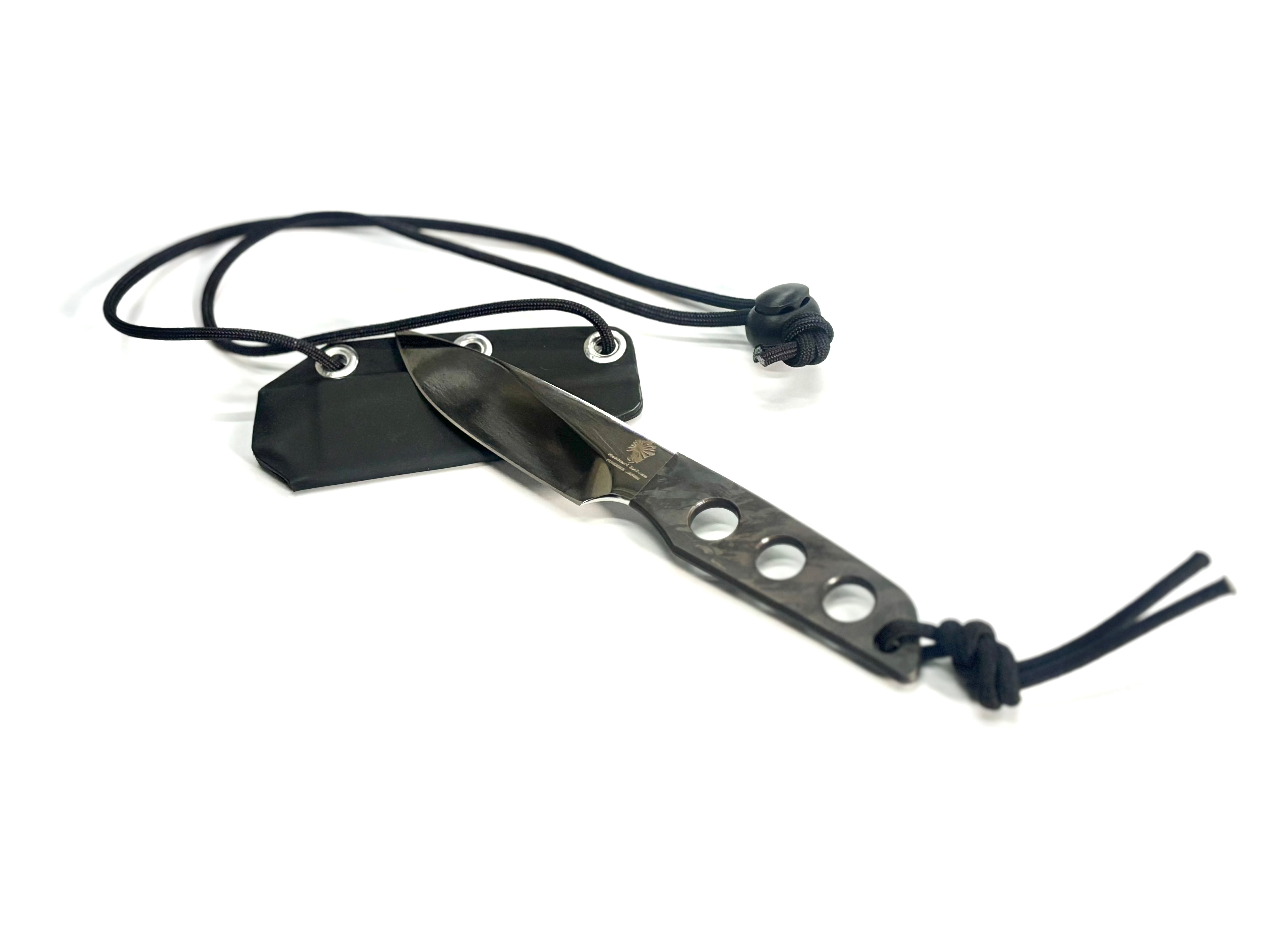スケルトンタイプのナイフです。特に、狩猟における獣の解体を意識して作っています。もちろん、ユーティリティー性も持たせたデザインになっていますので、日常生活における普段使いの刃物としてもしくは、釣りやキャンプにもオススメです。狩猟用のバックアップとしても良いと思います