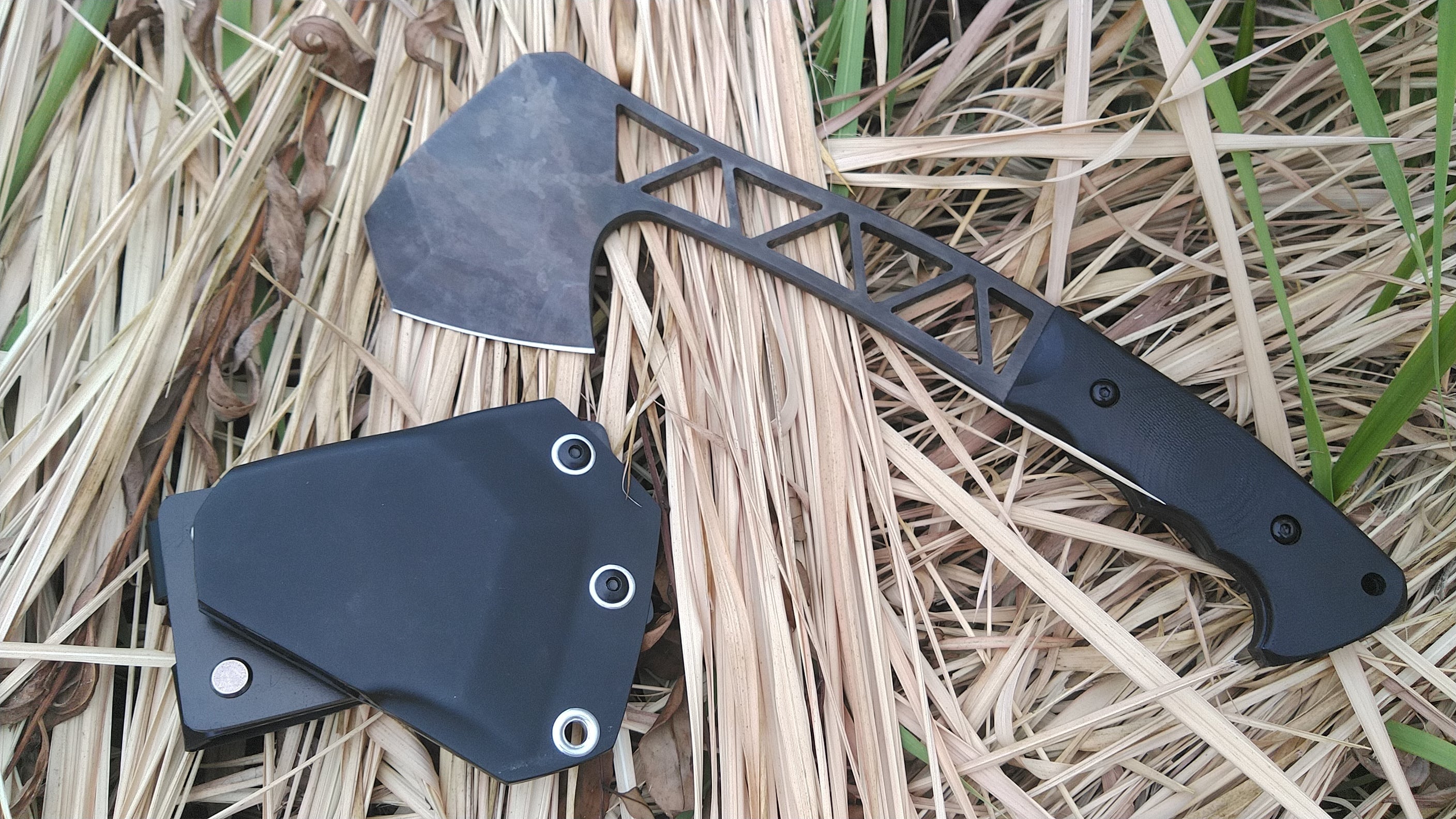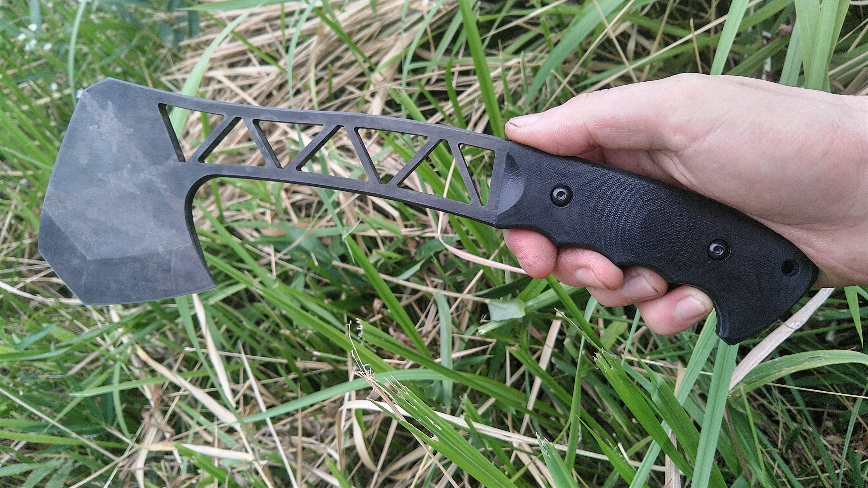 携行性が高く切断能力も充分な手斧をコンセプトに製作致しました。携行要領はザックの肩の部分に取り付けて運用する事を想定しています