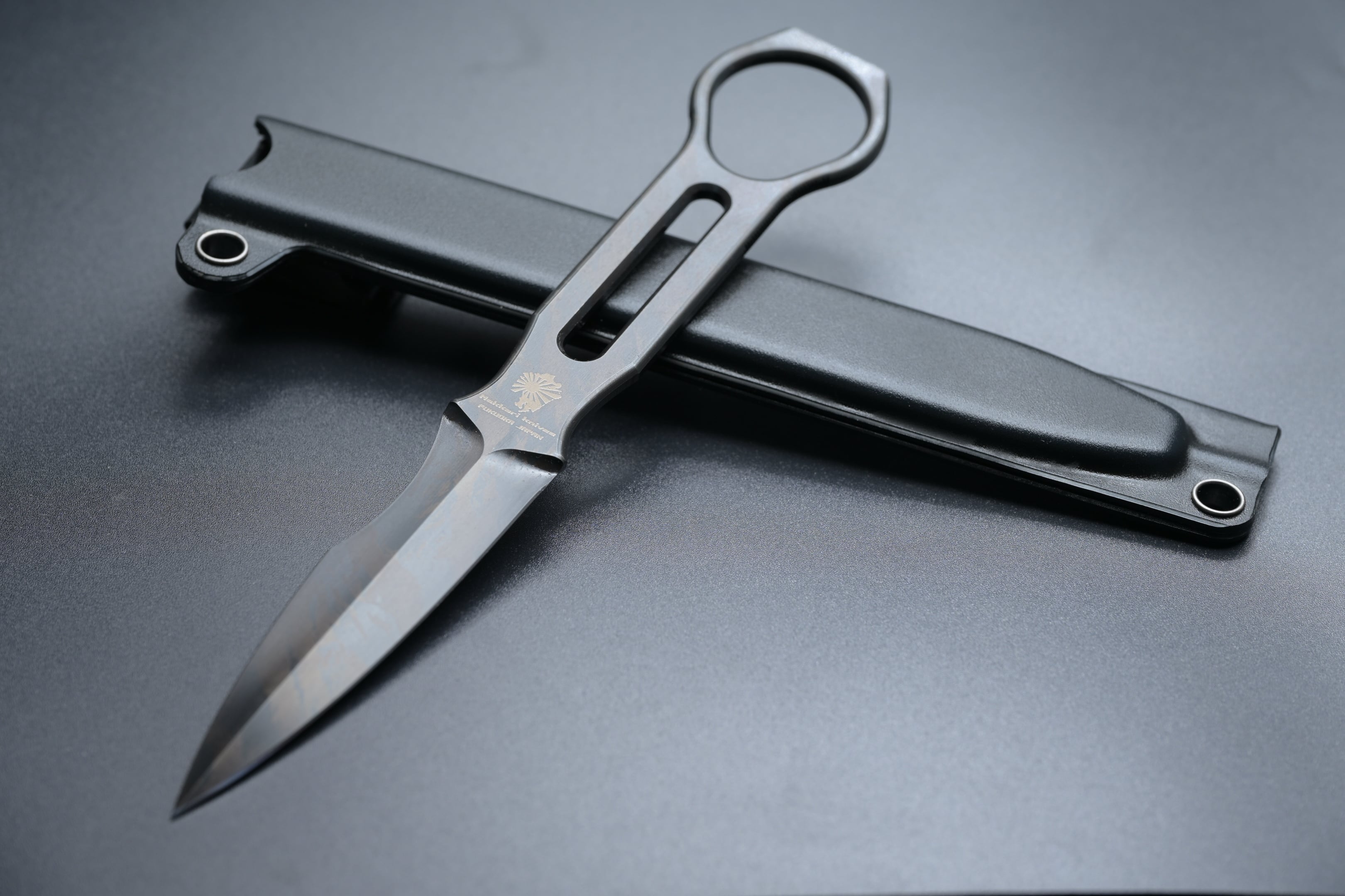MOLLEウェビングに挿入して携行可能な細身のシース(黒のみ)と、ultilinkやulticlipなどを装着したりパラコードで装具に固定可能なシース(黒と陸上自衛隊迷彩)の2種類の形状を用意致しました。