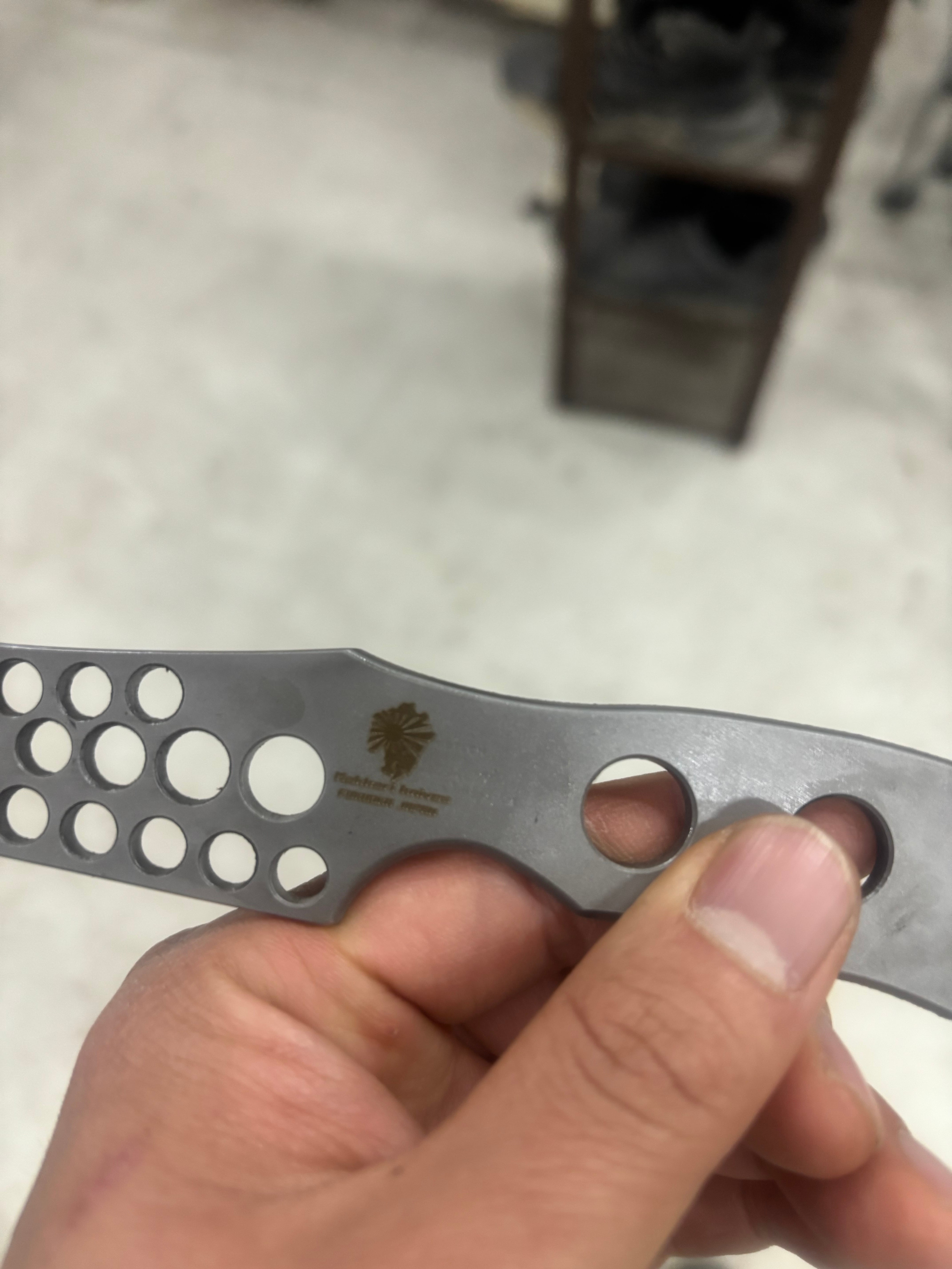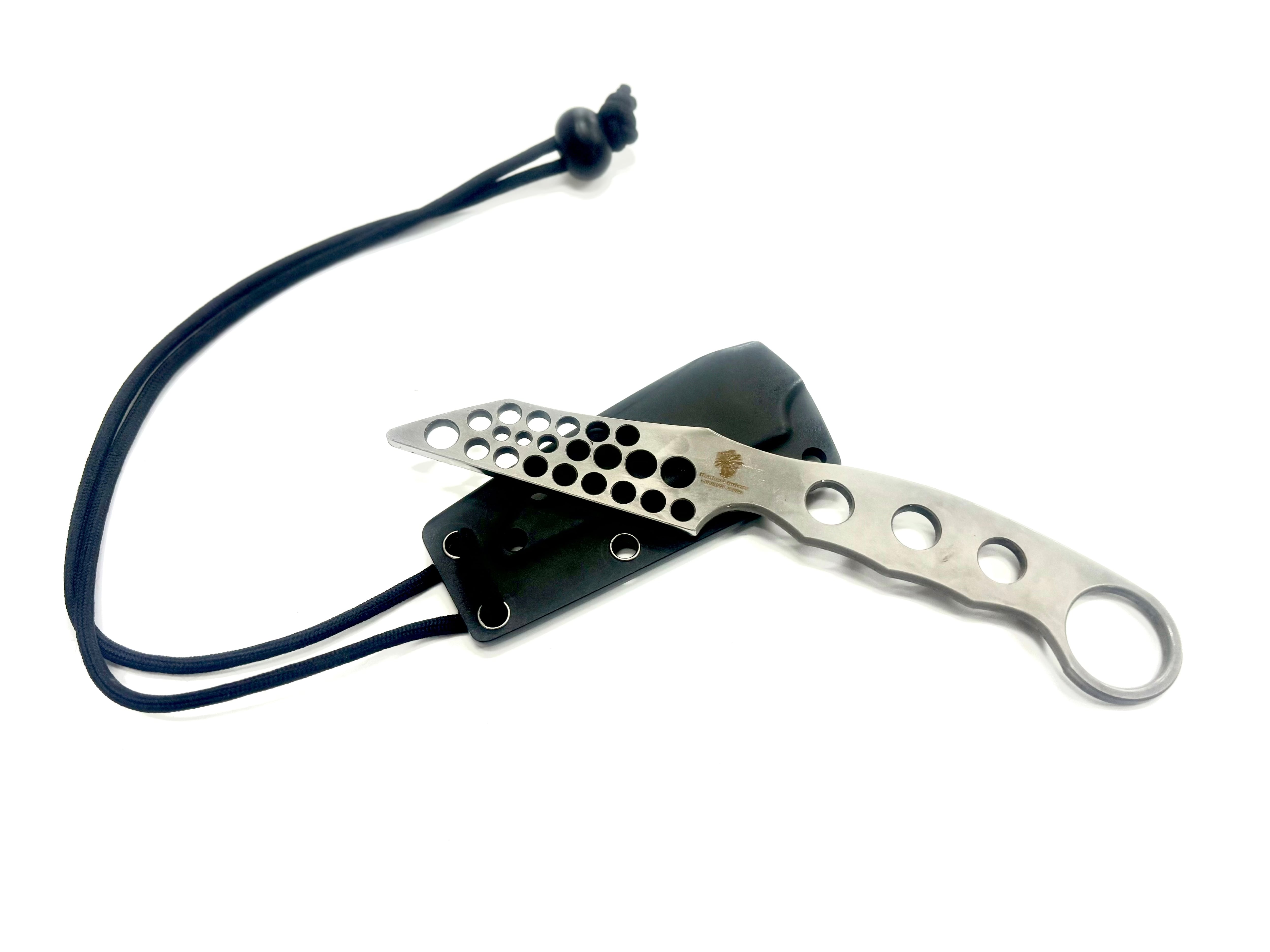 スケルトンロバピーのコンセプトをベースに、刃渡りを少し長くしてハンドル形状を変更しフィンガーリングを追加したトレーニングナイフです。